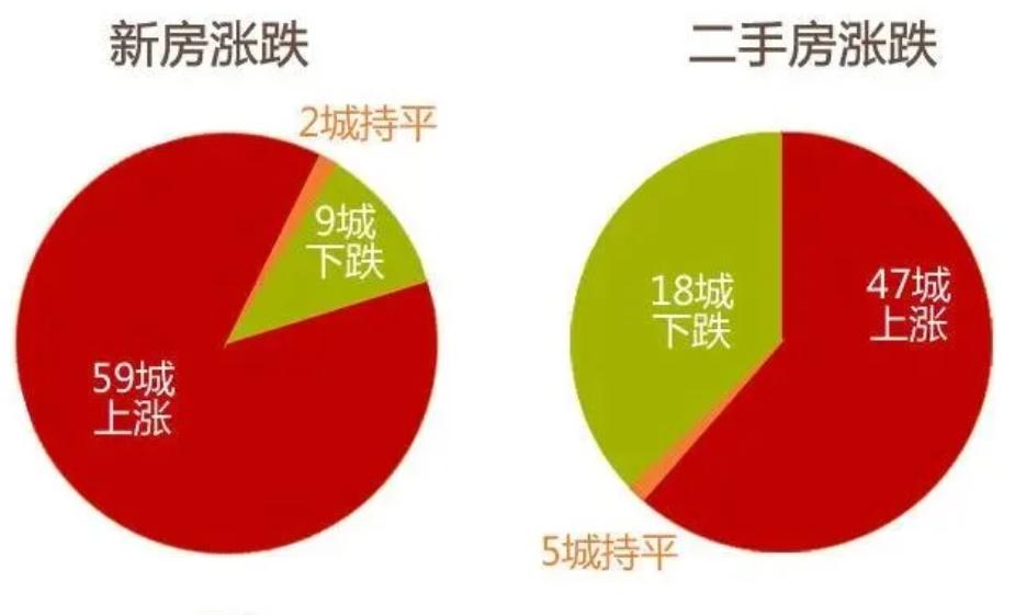 我们看最近一个月的,8月份,70个大中城市中,有59城的新房环比是上涨的,9城下跌,2城持平。二手房有47城环比上涨,18城下跌,5城持平。