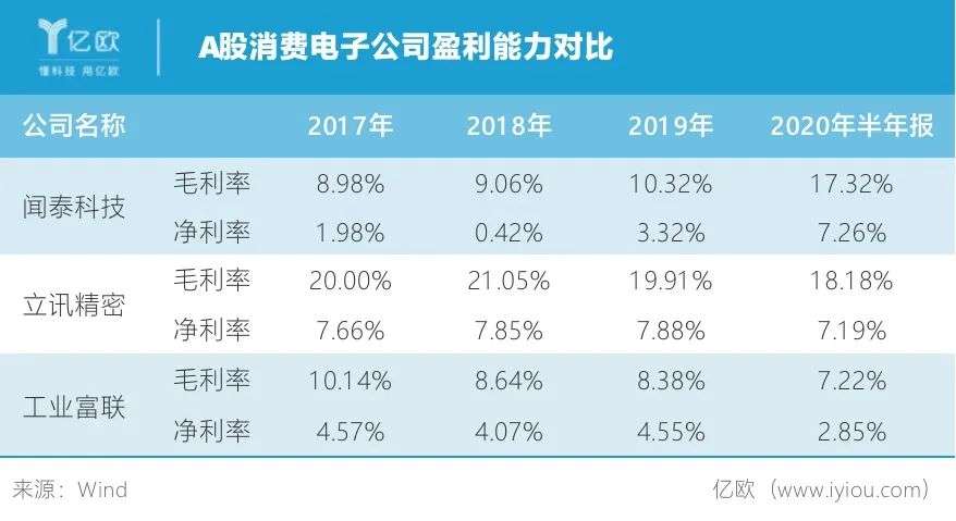 从今年上半年数据来看,即使安世半导体大部分业绩并表,闻泰科技的毛利率提高到了17.32%,净利率提高到了7.26%。这一数字才勉强达到立讯精密的水准。