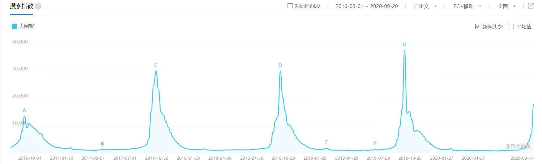 百度指数显示,从2016年起,大闸蟹的热度持续走高。大闸蟹礼券也和月饼一样,成为中秋国庆期间的硬通货。