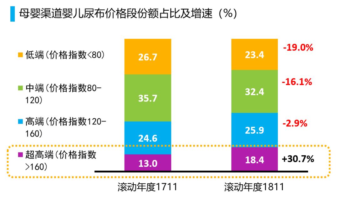 数据显示,2018年中国市场中,高于市场价格1.6倍的超高端婴儿尿布增速达到了30.7%/尼尔森《中国婴幼儿快消品新趋势》