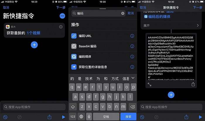 据界面新闻记者了解,在将iPhone更新至iOS 14后,后续操作总共分为两大步骤。第一步主要是将用户保存好的视频通过编码解码技术转化为音频,第二步则是创建个人自动化并利用已有的音频地址运行新的快捷指令。整个过程都在用户的“快捷指令”中操作完成。