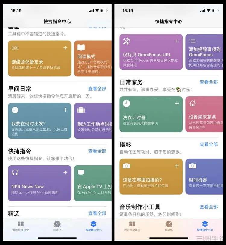 即便不知道捷径怎么玩,其实官方也提供了大量预设好的捷径可供选择,只用点击添加即可。