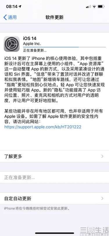 开机之后第一件事儿,自然是升级到iOS 14,目前正式版已经推送,并且凡是能运行iOS 13的设备也都能升级到iOS 14系统。