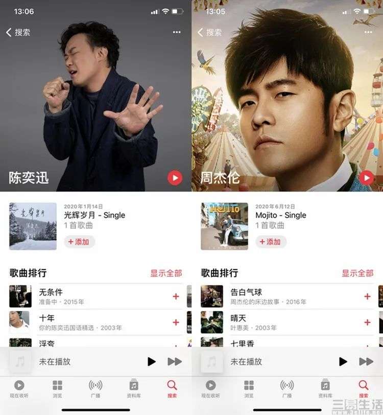 就拿我喜欢的周杰伦以及陈奕迅相关音乐为例,其它平台上要么曲库不全,要么就是得付费单独购买,而在Apple Music上则无需如此,几乎所有的歌曲都能找到。而且纯净无广告,使用体验非常的好。