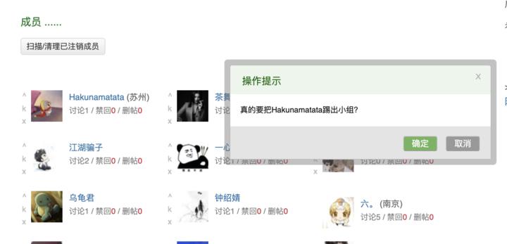 在小组创立的第一天,发现了这个小组的豆友基本都没按耐住自己点「加入」的手,然后就等着被管理员踢出去。遗憾的是,这些最初加入的成员可能等不到创始人的「动手踢人」了,因为踢他们的是脚本。