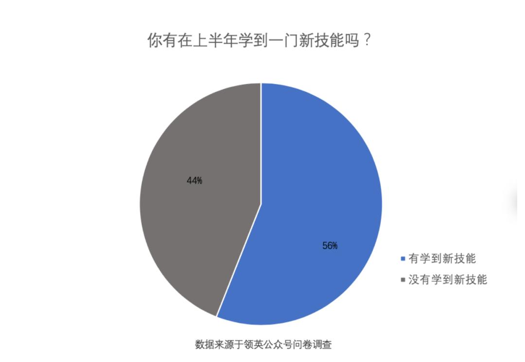 在我们发起的一次问卷调查中,56%的人表示自己在过去的大半年里有学到新技能。