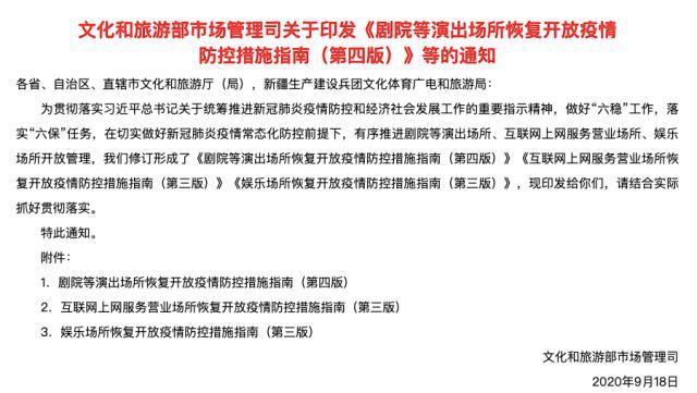 文化和旅游部于9月18日印发了相关条例,其中提到:剧院等演出场所观众人数原则上不得超过剧院座位数的75%。也指出“按照科学有序原则,优先放开室外举办的大型营业性演出活动”。条例推出后,行业人士普遍认为,这在某种程度上象征着大型演唱会、户外音乐节回归在望,而不少乐迷也表示:音乐节,Livehouse门票想必终于可以喜迎降价了。