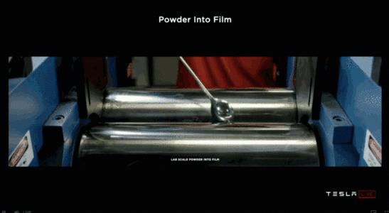 生产时先对电极进行湿法处理,然后再将引入到干电极技术,具体流程是将粉末状的材料压成膜,然后进行干电极涂层,这一加工过程的工艺也比较复杂,目前特斯拉还未实现量产。但好处是采用这一技术后,电池生产操作难度也降低了10倍。