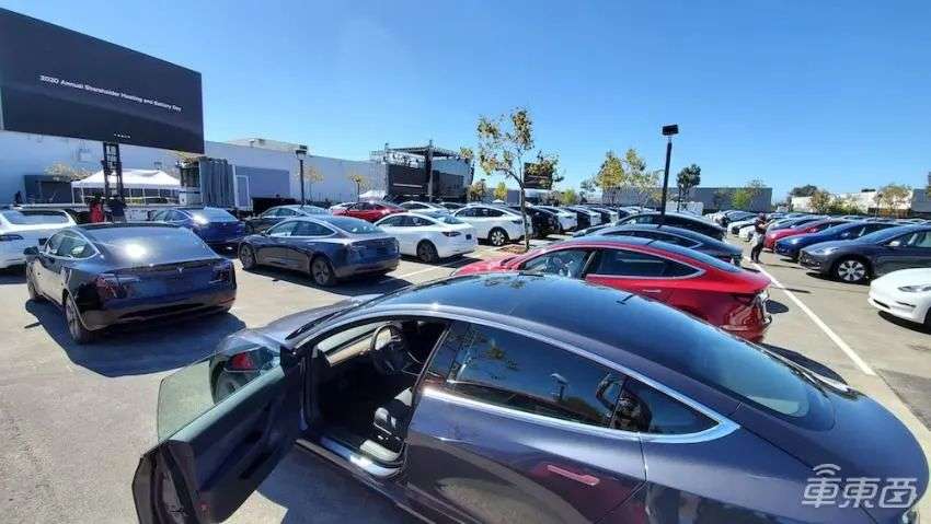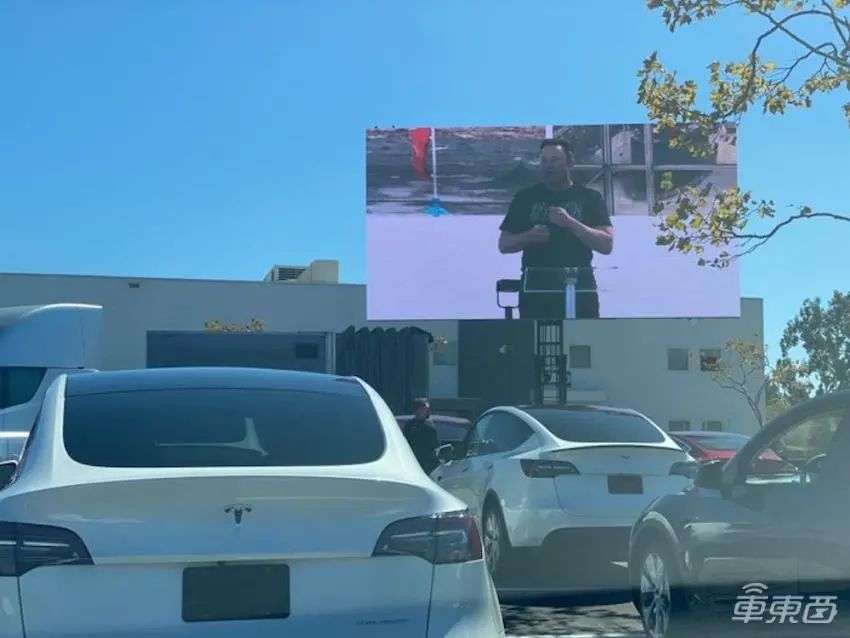 ▲电池日活动现场,观众都坐在Model 3车内(图源推特@Gfilche)