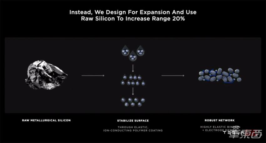 特斯拉采用高弹性的材料,直接将其涂抹到负极上形成覆膜来解决这一问题。