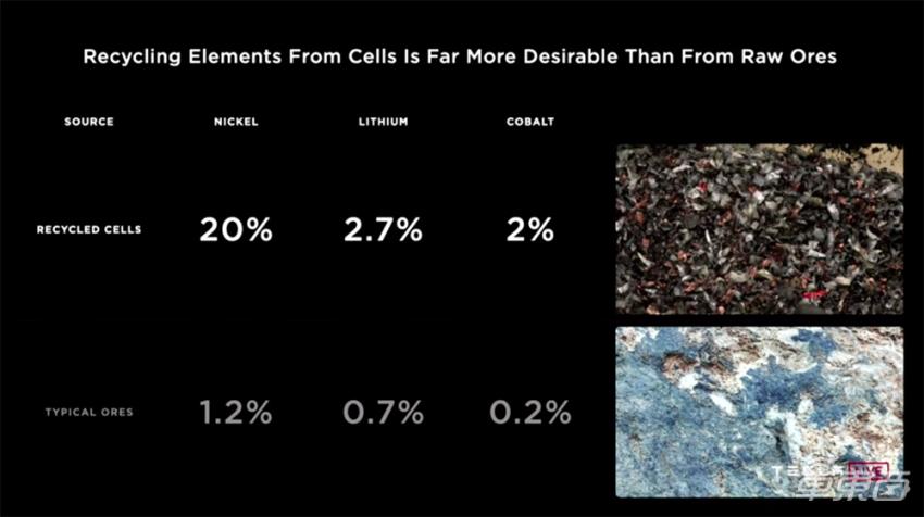 与此同时,特斯拉还在矿物开采和提炼上进行了优化,减少了生产过程中的消耗。建立了电池回收体系,回收各种贵金属重复使用。