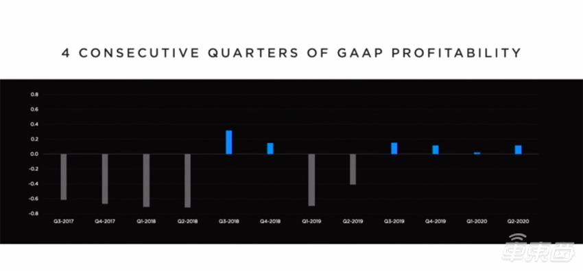 基于销量的增长和供应链的完善,特斯拉也获得了不错的财务表现。2019年三季度开始,已经连续4个季度盈利。