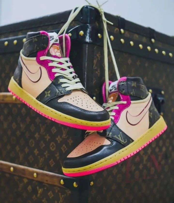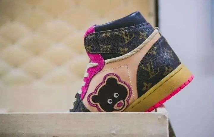 譬如这双「Off-Louis」 Air Jordan 1 鞋面皮质取材于真正的 LV 包,售价高达 4000 美元,全球限量 10 双。