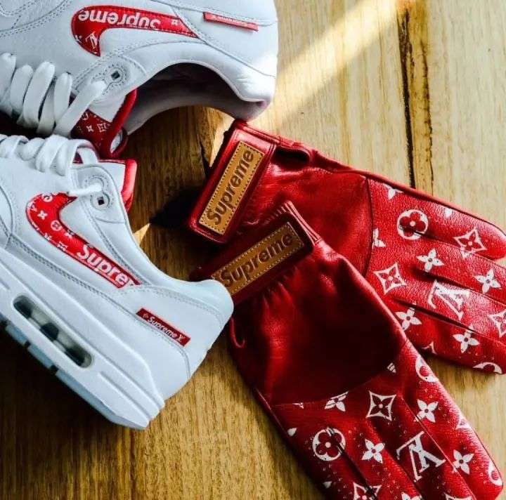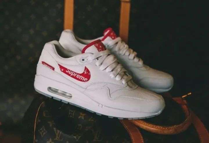 将 Nike air max 1 作为基鞋的客制版,结合了当年炸街的「LV x Supreme」联名花纹,很是经典。