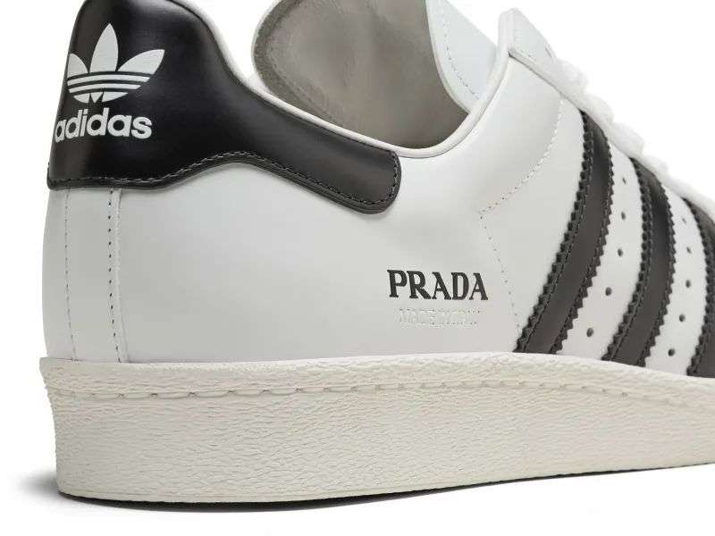 尽管这双Adidas x Prada 的 Superstar 在材质上选用了高端的高级粒面皮革,同时加上「 Prada 」和「MADE IN ITALY」 Logo 彰显了身份。