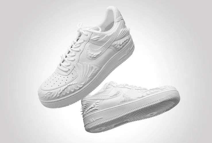 系列的白色 Air Force 1 被装饰上了极具中国特色的锦鲤纹,立体浮雕的纹样给这双纯白的球鞋带来了雕塑一般的质感,十分特别。