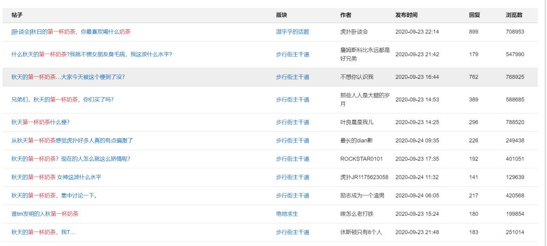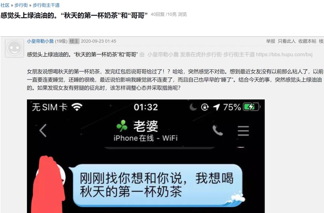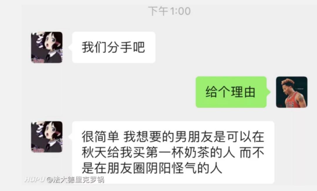 比如在虎扑步行街,有人发帖说,自己因为没有在这一天及时送上所谓秋天的第一杯奶茶而被女朋友干脆的宣布分手。