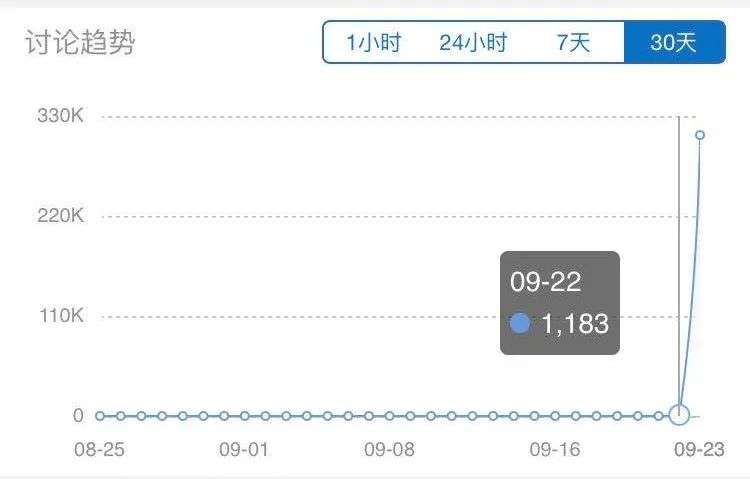 话题爆发的节奏,整齐得有些过分。比如在微博上我们很容易通过时间轴发现大量话题讨论的发布是集中发布在9月23日晚上22点59分。