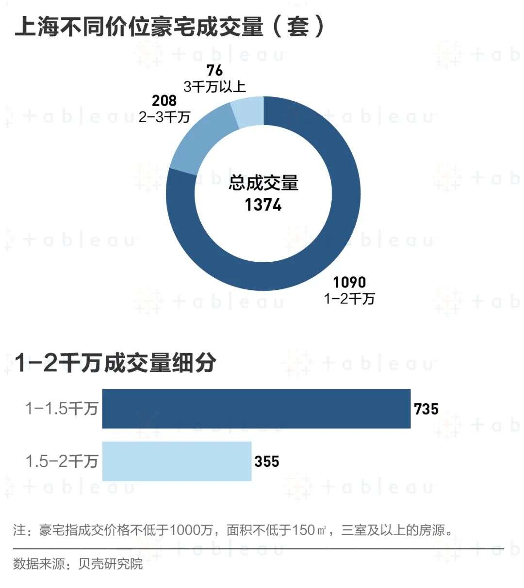 那么,上海卖得最好的豪宅都在哪些价位?它们都分布在哪里?什么样的豪宅更能获得上海富豪们的青睐?我们用数据可视化分析工具 Tableau 描绘出了上海豪宅的全景画像,一起来看看吧。