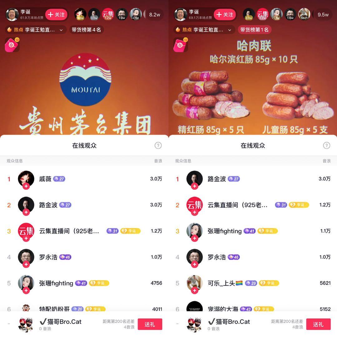 8. 开播17分钟左右,明星戚薇来到了直播间,并登顶榜一。此时李诞启动了感谢打榜环节,看着榜说“这都是熟人”,榜二是李诞书的出版商路金波,“第四(罗永浩)我就不念了”。这个环节过后,榜上的戚薇就蒸发了。本次李诞带货的许多产品都曾在戚薇直播间售卖。