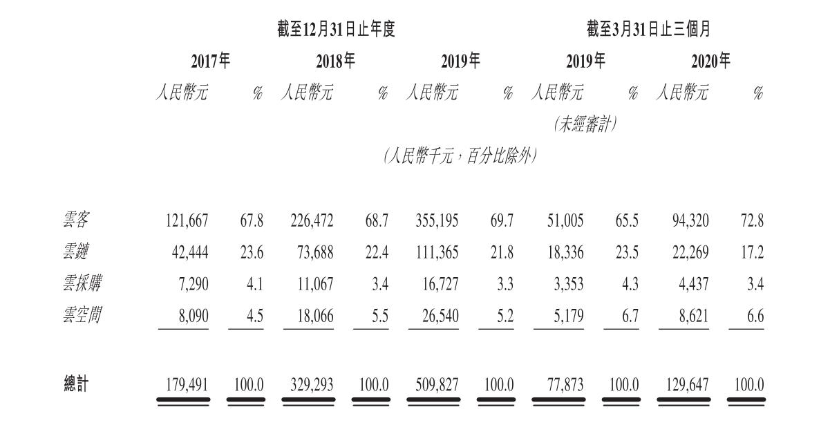 招股书显示,2017年、2018年及2019年以及2020年第一季度分别有95家、94家、97家及94家百强地产开发商至少订阅一种SaaS产品。