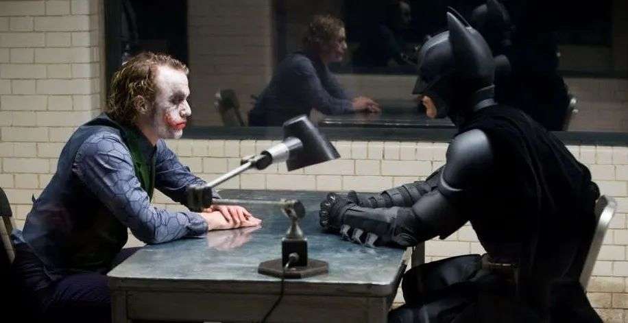 小丑不仅嘲笑蝙蝠侠的价值观,甚至对哈维·丹特、对整个哥谭的警察、对两艘船上数千个人也这样做,玩弄整个社会彼此信赖的基础,进行拷问人性的社会实验。