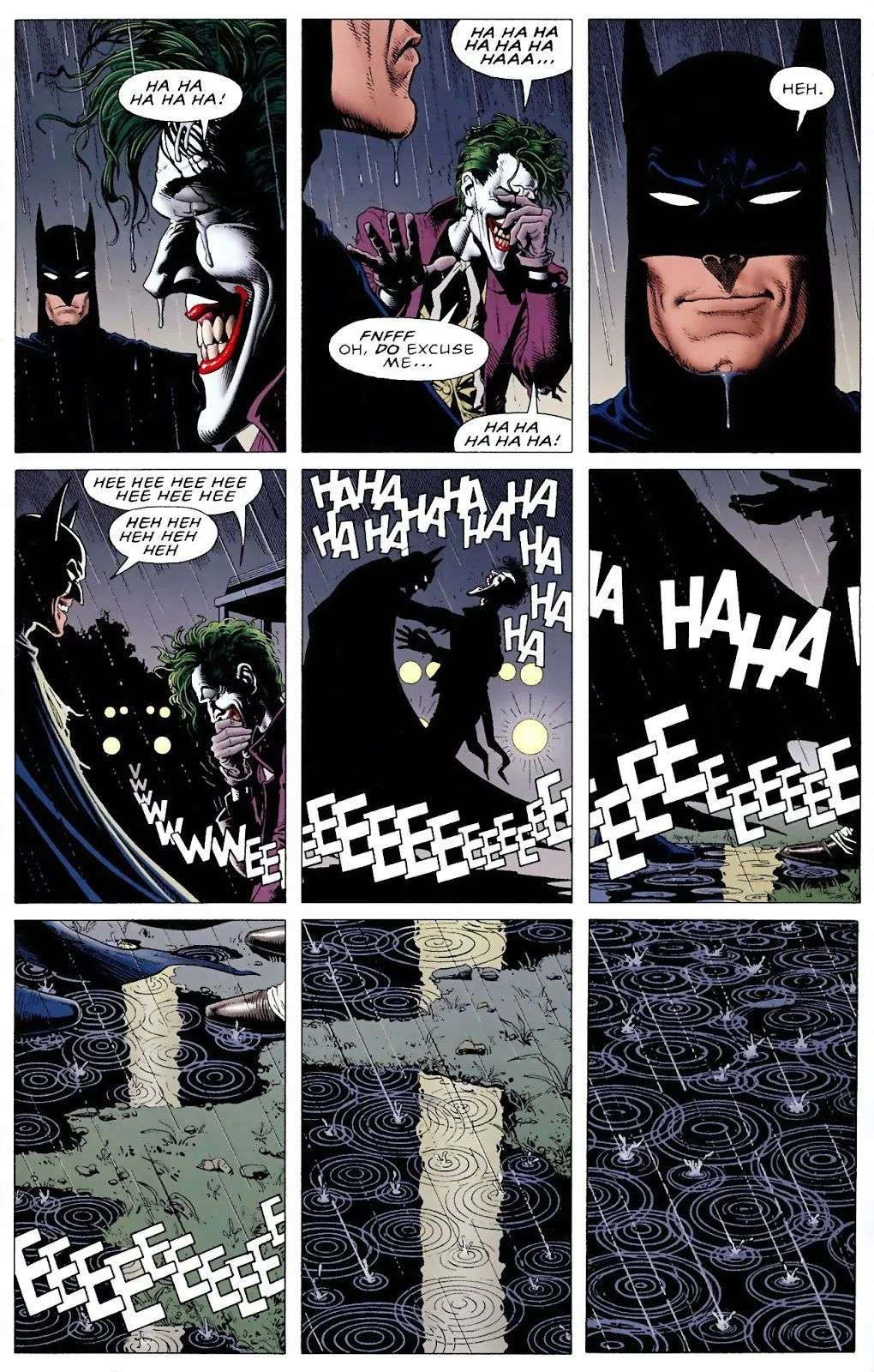 通过重写小丑的起源故事,阿兰·摩尔点出:是个人的悲剧性过往,造就了如今疯狂报复社会的小丑。(在2019年的《小丑》电影里,这也是最让人共情的部分)所以,他才执着于伤害蝙蝠侠与戈登,试图将那份悲剧与无力感强加于他人。