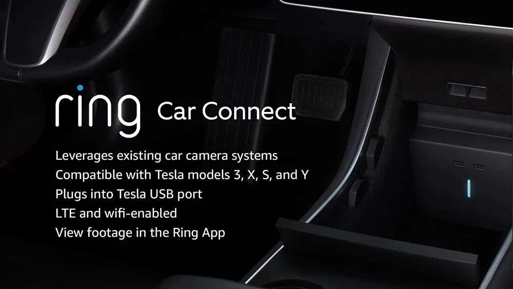 Ring汽车连接还可兼容特斯拉Model 3、X、S、Y型号,并支持特斯拉USB接口。