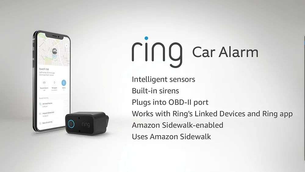 其中,Ring汽车报警器内置智能传感器和警报器,支持汽车OBD-II接口,适用于各类Ring连接设备和Ring应用程序。