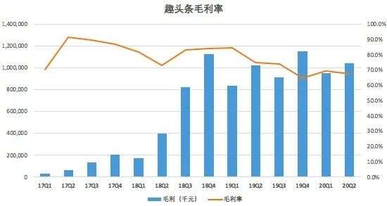 营收增速呈现断崖式下滑的同时,趣头条的毛利率也出现了明显的下降趋势。