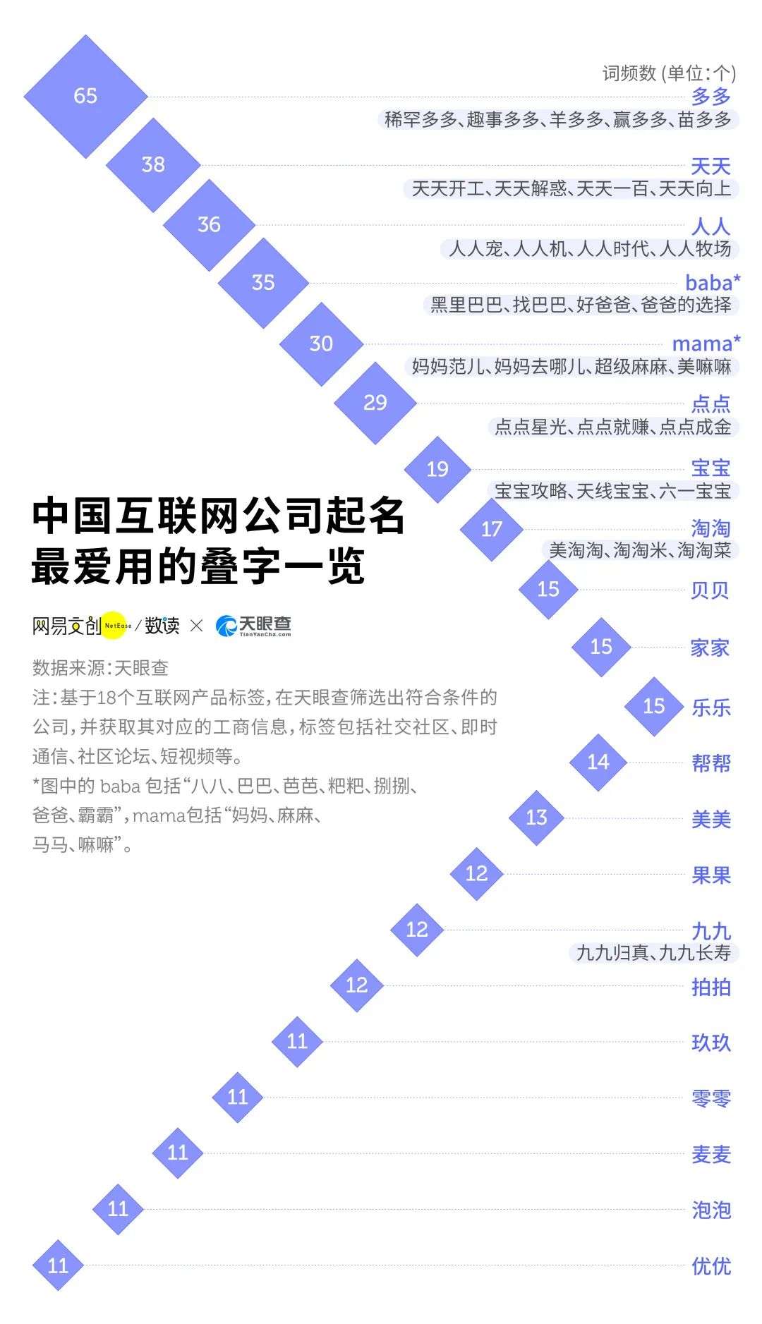 可是起名真有那么难吗?为了研究中国互联网公司的起名套路,我们通过天眼查调取了 7 万家互联网公司的名字,不管你是想独辟蹊径,还是稳妥揾工,都可以看看以下的总结。