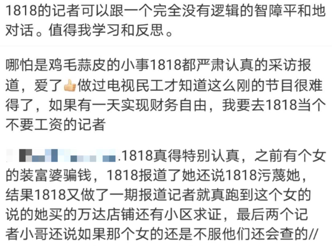 有人说,哪怕是鸡毛蒜皮的小事,1818都严肃认真的采访报道,做过电视民工才知道这样的节目多难得。