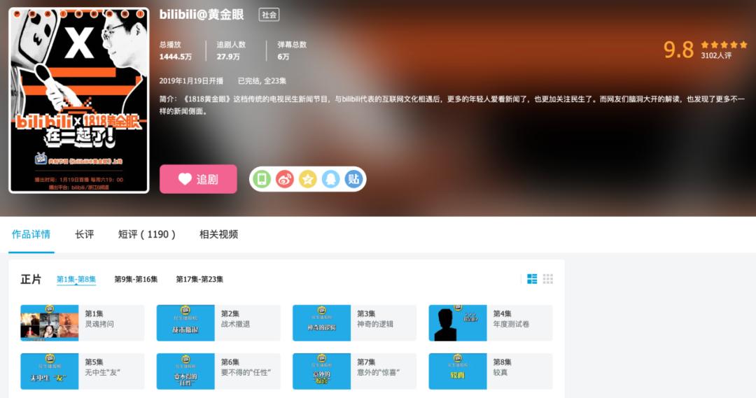 2019年,B站曾抓住这一特点,结合站内年轻用户习惯通过弹幕精准吐槽的特质,出品了一档节目《bilibili@黄金眼》。