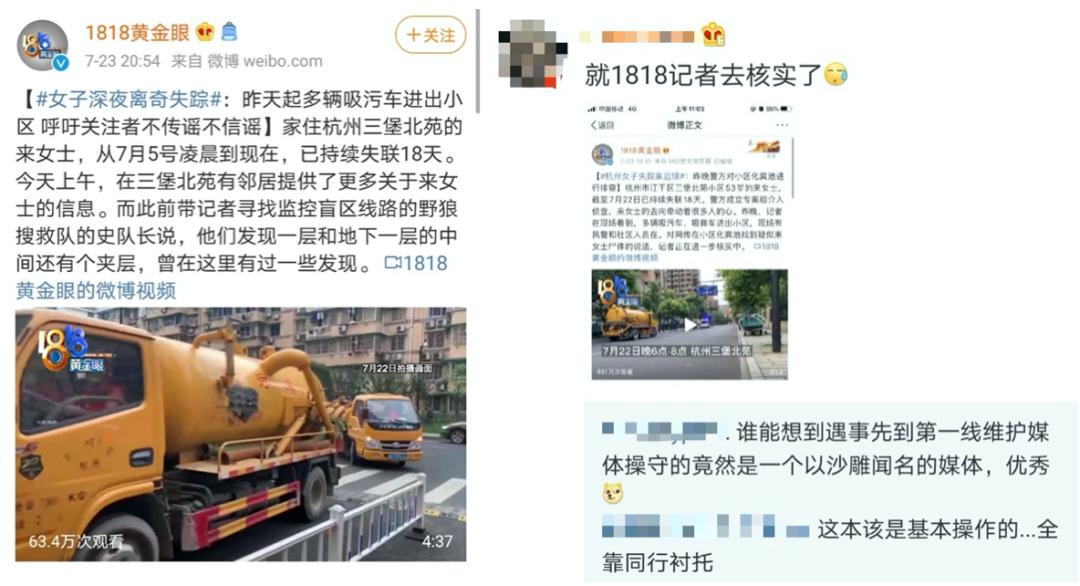 彼时,《1818》也报道了案件最新进展,称前线记者正在“对网络上的说法进一步核实中”。它也几乎被认定是当时报道媒体中唯一未发布谣言的媒体。