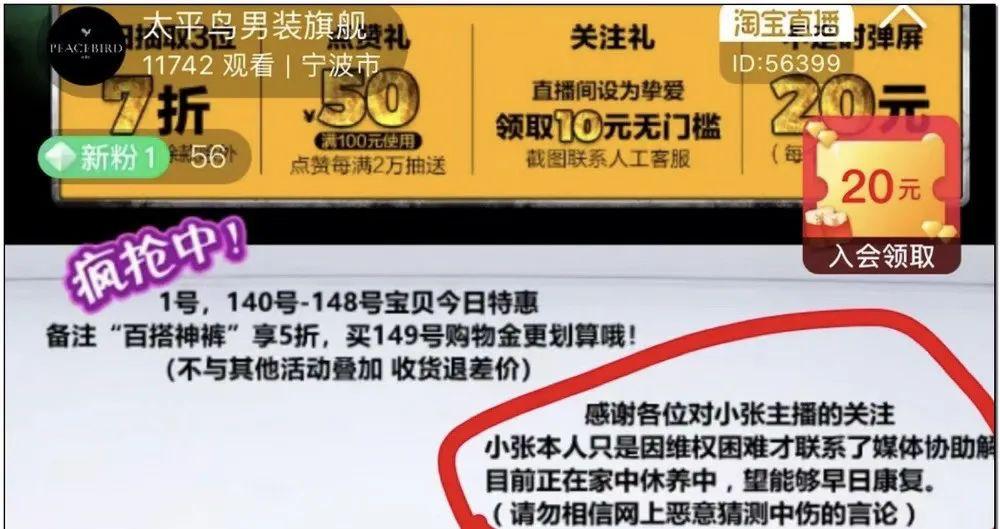 浏览小张的社交媒体动态,成为网友们时下最感兴趣的事情。有网友发现他的本职工作是一名太平鸟男装品牌的淘宝主播,私信客服求证,以至于客服专门添加了“小张”的自动回复,并在当晚的直播间标出他在休养的信息。