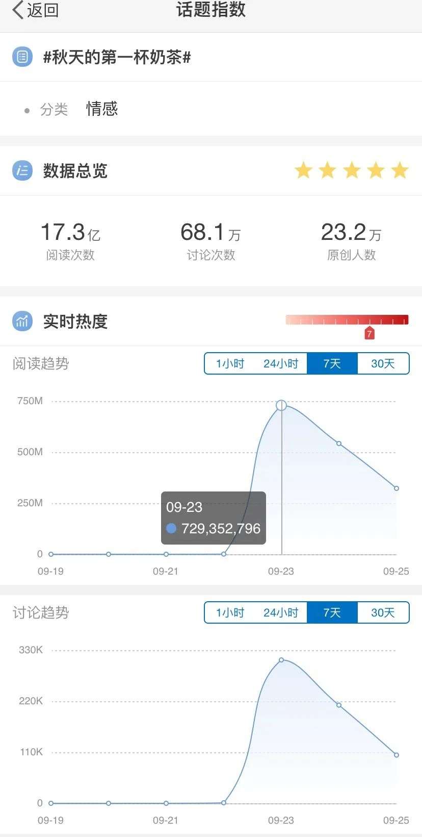“秋天的第一杯奶茶”在微博引发热议,图片来源:微博话题数据