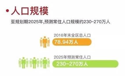 2017年广东省人民政府批复的《广州南沙新区城市总体规划(2012-2025)》中明确说明,至2025年,南沙新区预测常住人口规模约为230-270万人。