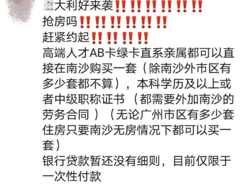 在相关经济数据迅猛增长的同时,南沙还备受政策青睐,上周(9月17日),在广州的房地产圈曾流传着一则与南沙相关的消息,主要内容如下——