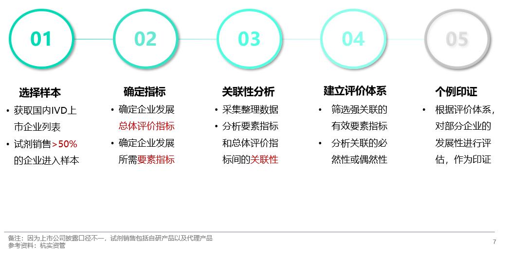 第一步,选择样本。从30多家国内IVD上市公司中,筛选出24家试剂销售收入占比大于50%的企业,作为样本;