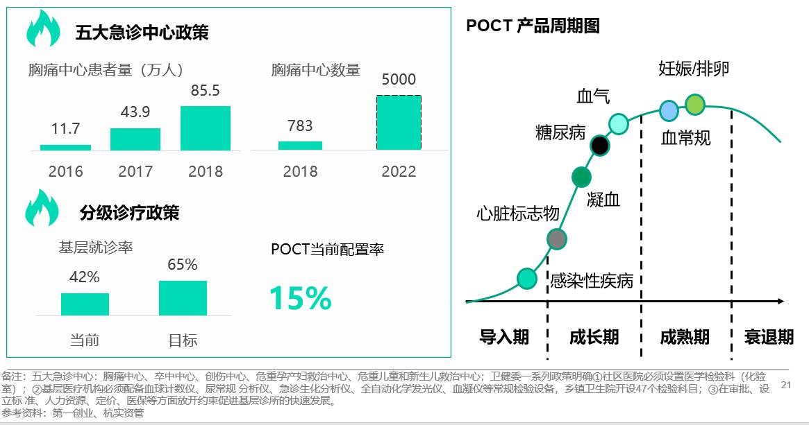 POCT是更便利的代表。五大急诊中心和分级诊疗的推行,将为POCT提供更广阔的应用场景。