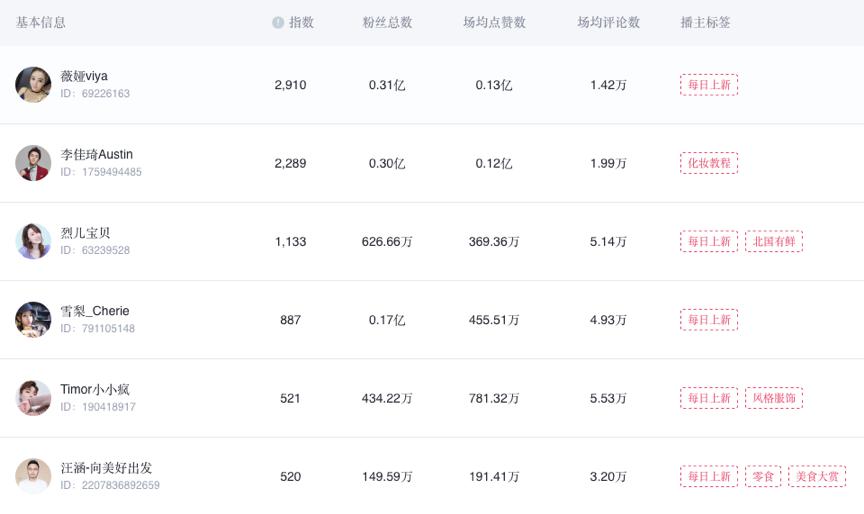 锌刻度也通过某数据平台观察发现,薇娅的直播间从指数、粉丝总数、场均点赞数三个维度都超越了李佳琦。