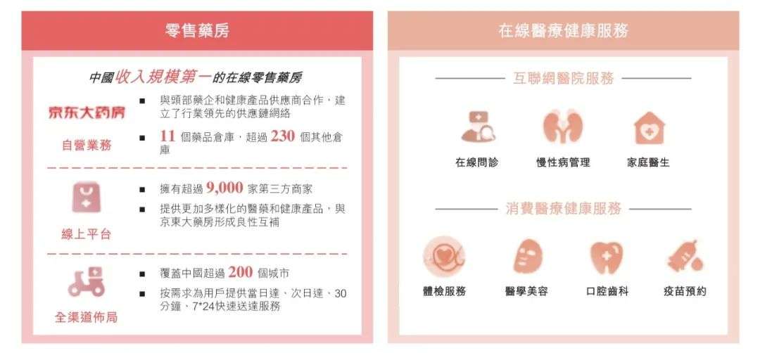 根据弗若斯特沙利文的报告,按2019年收入计,京东健康是中国最大的在线医疗健康平台及最大的在线零售药房。截至2020年6月30日超过1.5亿名用户曾使用京东健康的平台购买医药和健康产品或医疗健康服务。