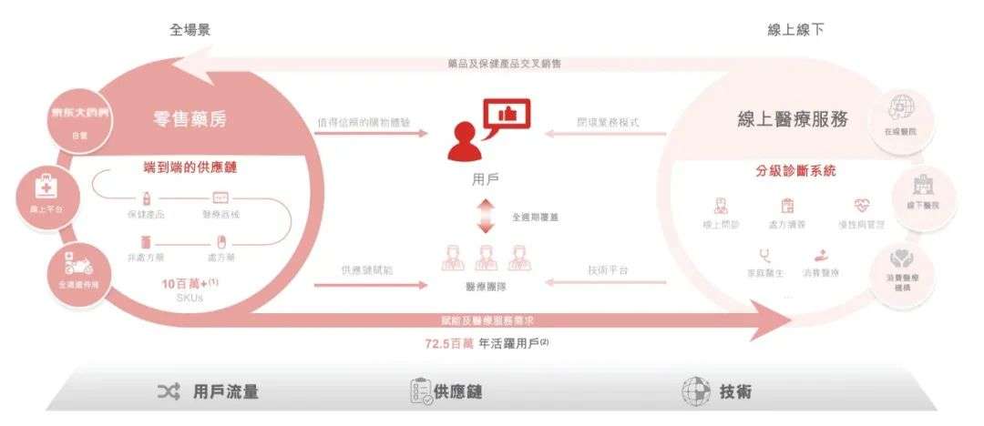 从这一业务闭环不难发现,京东健康零售药房的买家同时是潜在的医疗健康服务用户,而医疗健康服务用户又成为反哺零售药房和其他消费医疗健康服务的重要流量。