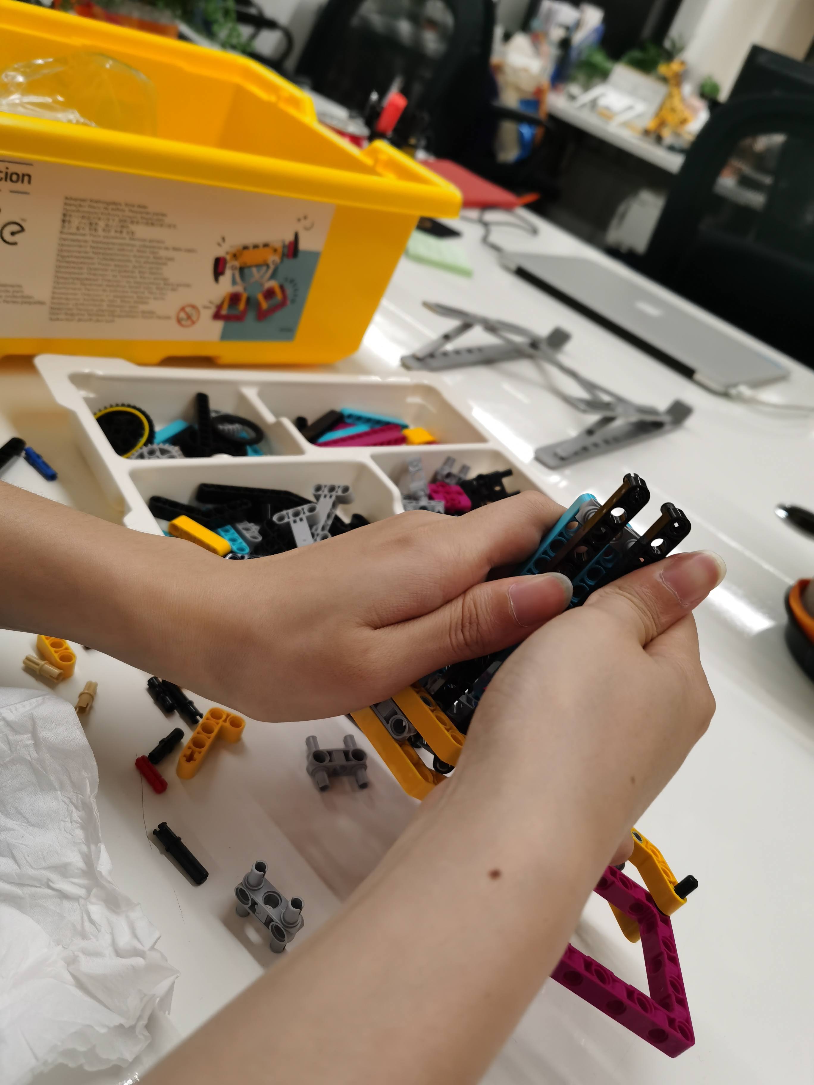 在学校,老师可以带领学生体验和尝试SPIKE Prime科创套装,在保持社交距离的情况下分工合作,完成属于自己的“机器人”搭建、锻炼各方面的STEAM技能。