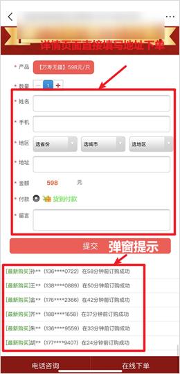 用户在商品详情页可以直接填写地址、下单购买,后续的售后服务及发货,商家会再通过电话联系用户。