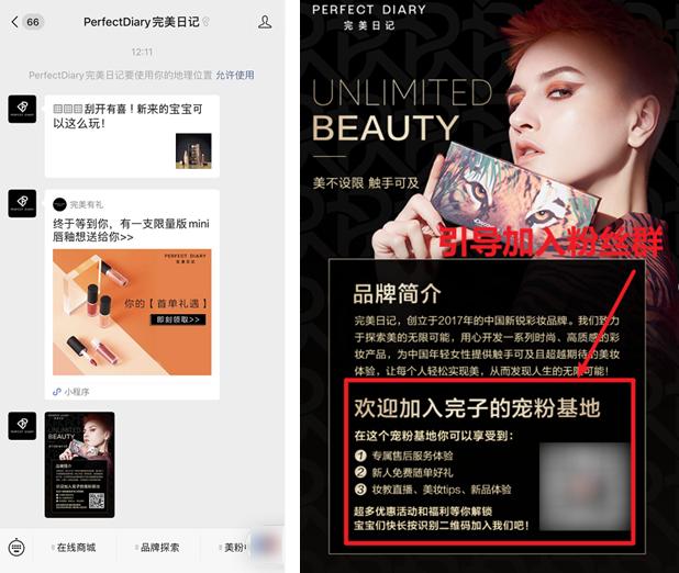 比如,即将 IPO 的完美日记,就会引导粉丝进入自己的粉丝群,为留存转化打基础:
