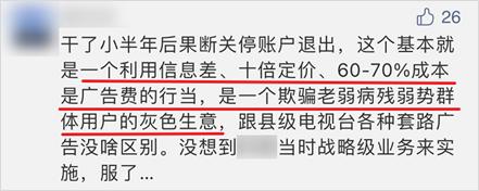一个利用信息差、十倍定价、60%-70%成本是广告费的行当,是一个欺骗弱势群体的灰色生意