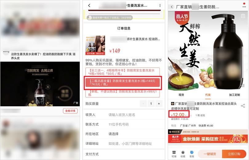 第一,前面我们就提到过,二类电商隐匿于各大平台的信息流之中,利用大数据的算法实现“货找人”。