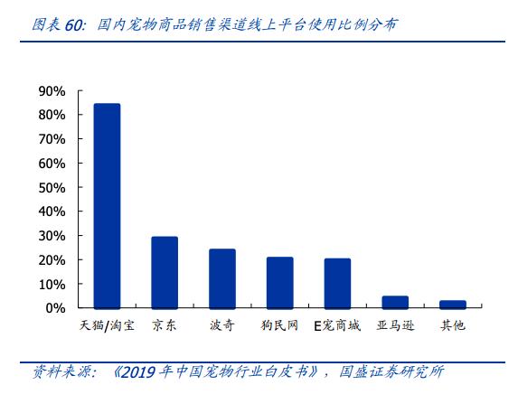宠物行业白皮书显示,线上平台的使用比例中,天猫/淘宝和京东是使用比率最高的平台,波奇网排名第三。