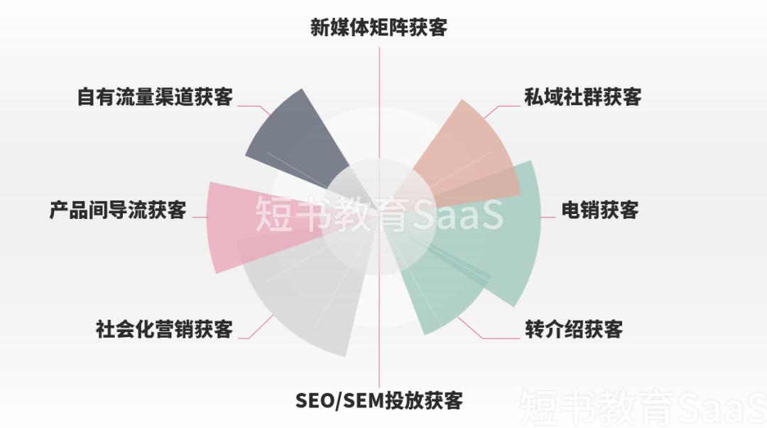 社会化营销获客:猿辅导和最强大脑综艺IP联合活动推广方式。媒体矩阵获客:抖音、微信公众号、微博等带有流量的平台,做内容分发。